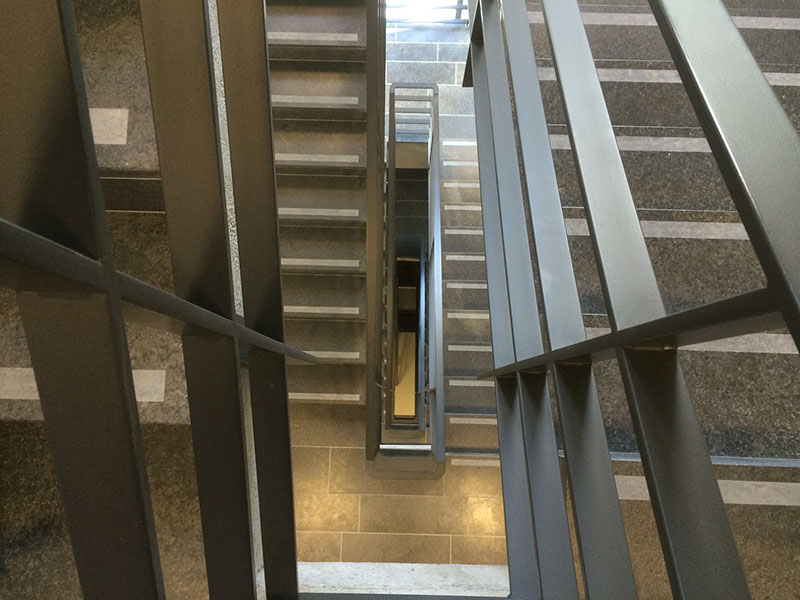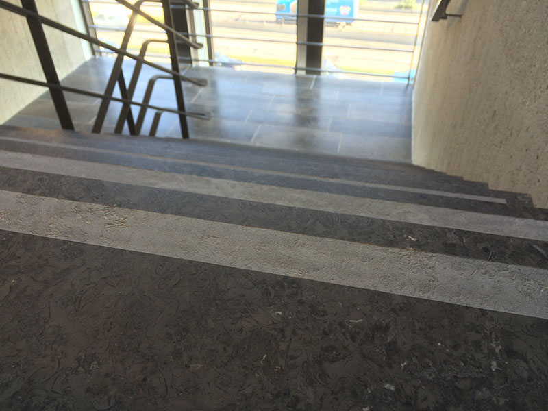 Dieses Projekt hatte es wortwörtlich in sich. Wir fertigten passgenaue Natursteinstufen in Stahlwange, mit eingearbeiteten sandgestrahlten Rutsch- und Sichtstreifen.